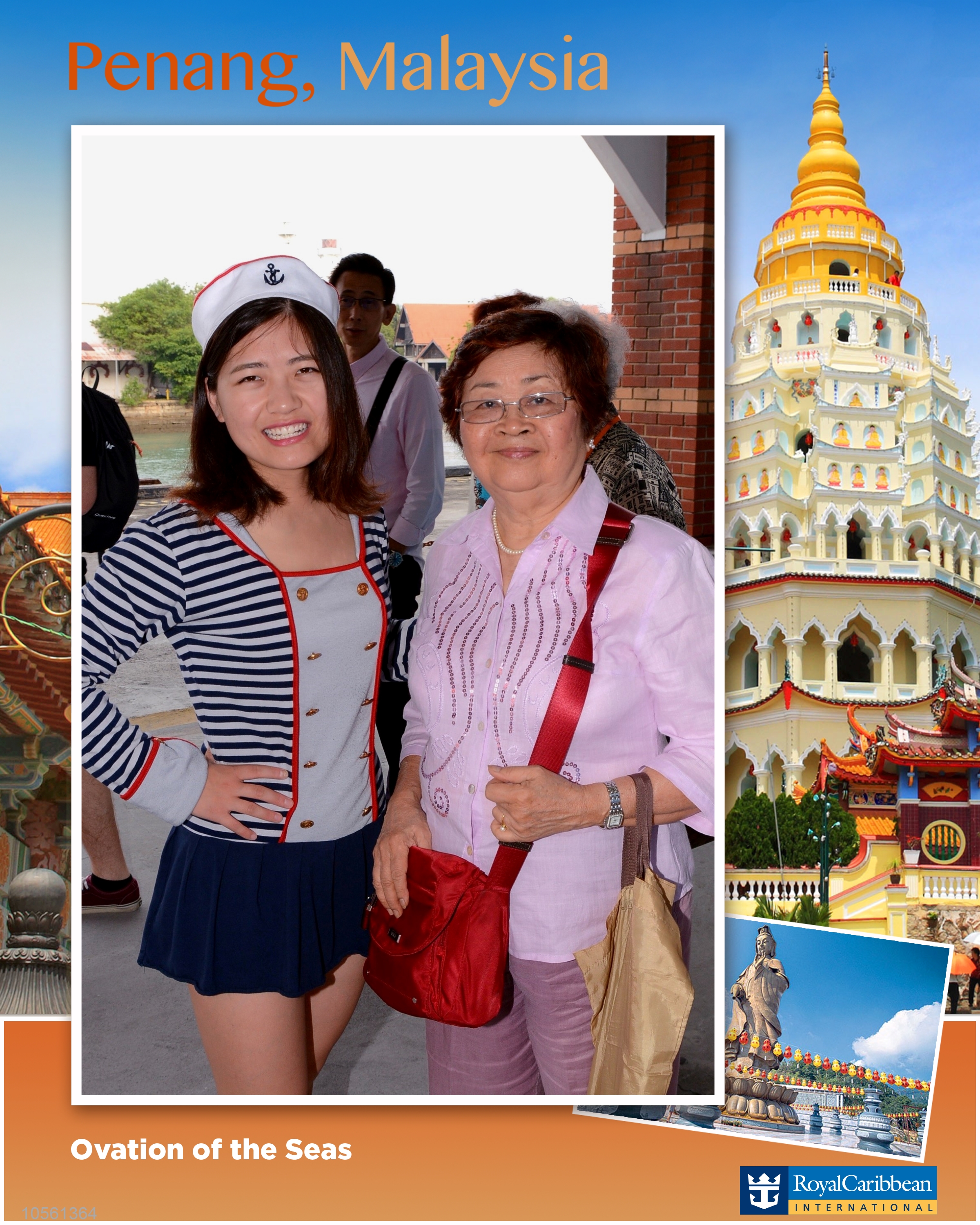 One lucky group, the Chow family went off with a private tour in a 7 seaters van organised by their relatives living in Penang. They had a full day tour crossing the bridge to Butterworth. They even tried out the infamous king of the fruit “Durian”- check out a photo! Yapp Yun Fui & his Uncle Chong Min Chong, hired a taxi for a short city tour and he took lots of video shots to bring home to show to his family in New Zealand. Some just went ashore and walked to a nearby shopping complex and some just stayed on board to enjoy the cruise organised entertainments.