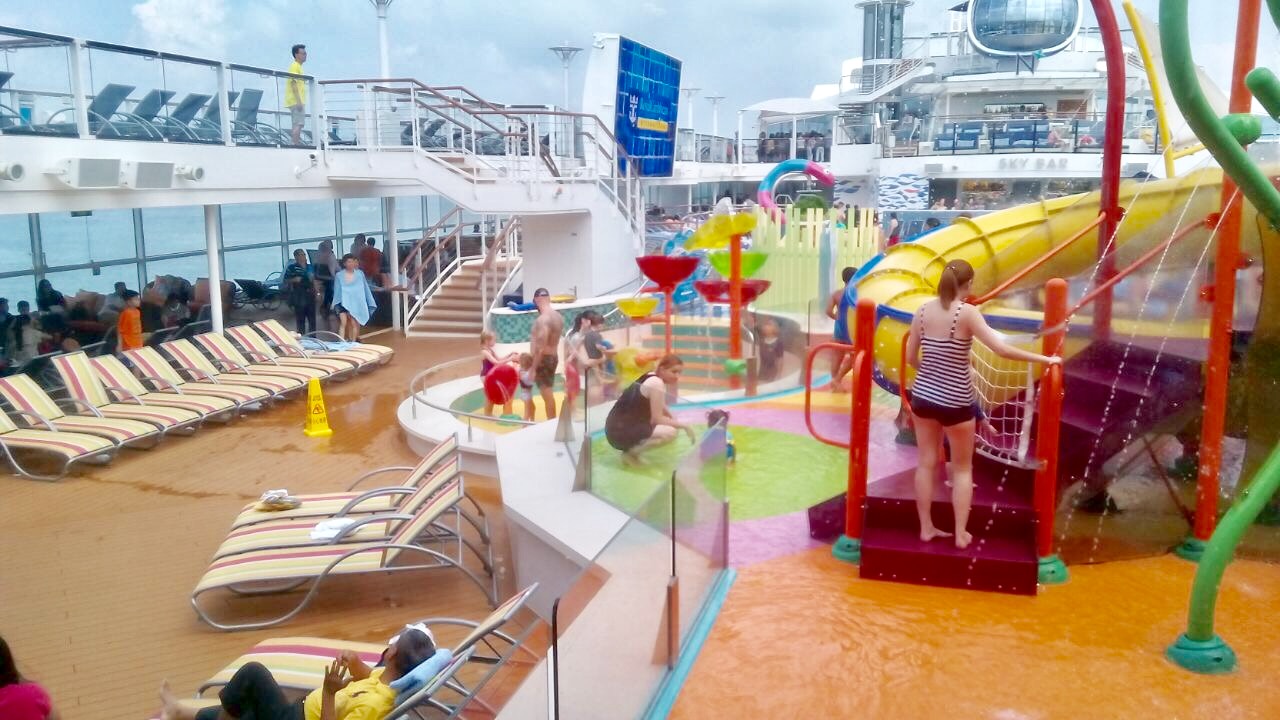 Welcome aboard, cruise information, deck 15, open pool activities and North Star which can take 20 persons up to 92 meters high, swing around 180 degree for a 360 degree view of the whole ship and beyond.
