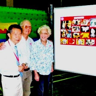 “曹銀霜老師由美國回来参与其盛!大家相见欢! 我有看到曹老師的勞作、照片都贴在佈告欄上我也看了与曹老師的合影-谢谢你.”