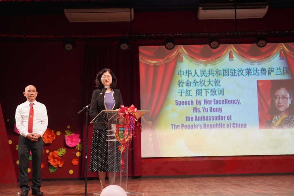2020年11月30日,中国驻汶莱特命全权大使于红阁下莅临奕中并出席观赏学生的文体大汇演。