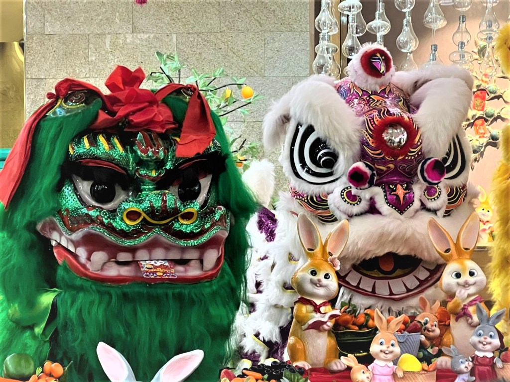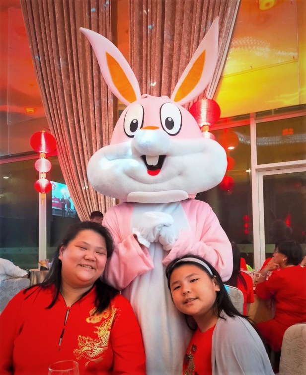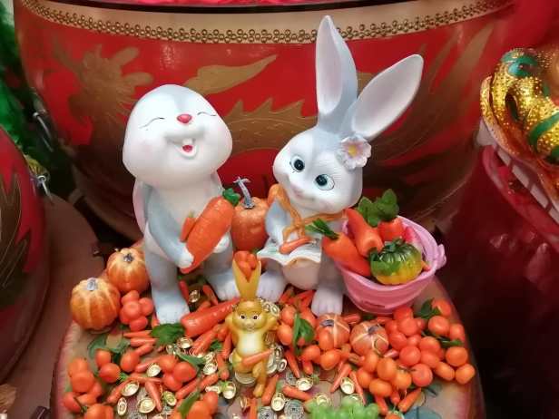 大家互道免年吉祥話:鴻兔大展、兔氣揚眉、奮發兔強、揚眉兔氣、錢兔似錦、兔來運轉…..。