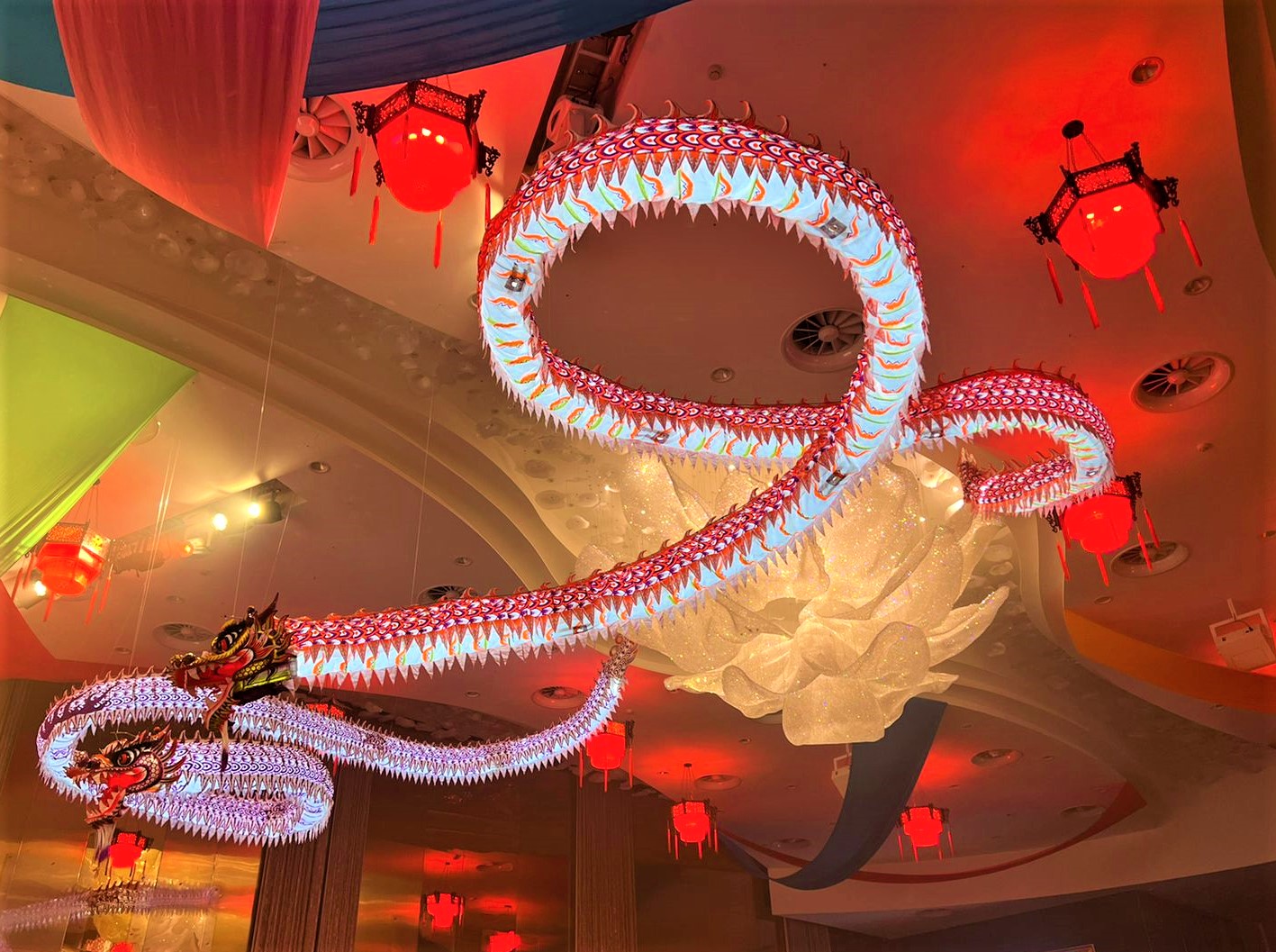 「龍」在全球華人心中是有著比較崇高地位的吉祥物。自古以來被奉為神靈,即代表吉祥富貴,又象徵至高無上的權威。「龍」在風水學中有招財化煞的功效。當晚,有四條飛龍騰飛在會場,增加祥瑞之氣,更有生旺氣及制煞之效。