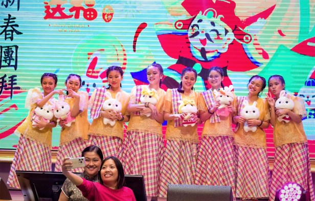 春晚節目以一則卡通兔子影片和四隻活靈活現的’巨兔’在臺上起舞揭開序幕, 緊鑼密鼓帶動舞獅出場更贈添春晚佳節歡樂氛圍。理事和婦女組成員的大合唱,歌聲優美,溫暖全場,令人陶醉;