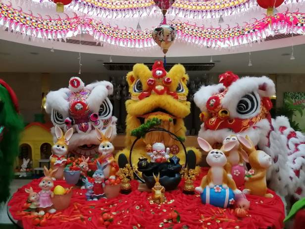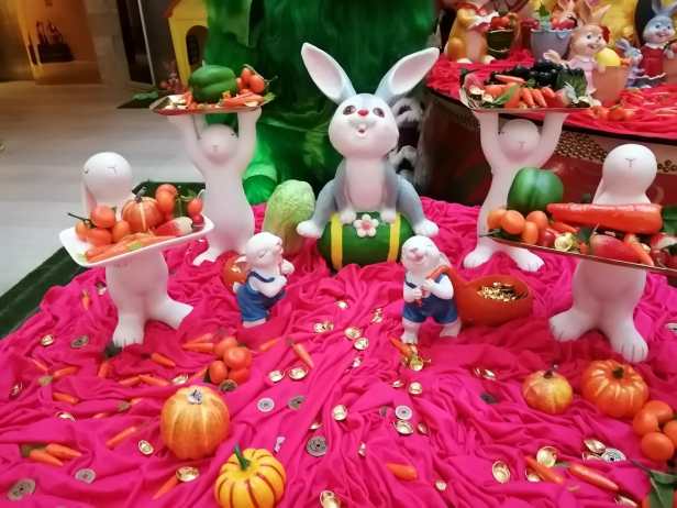 活潑可愛的兔子在會場亮相,蹦蹦跳跳福氣到,快快樂樂新年好。