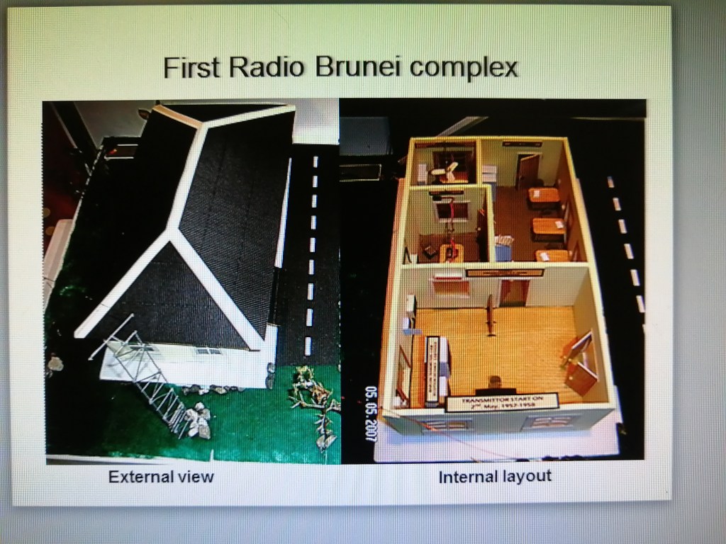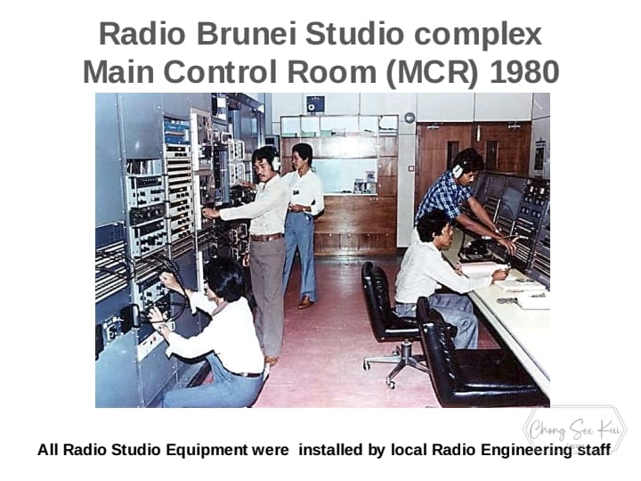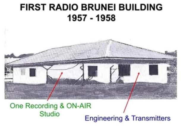 Radio Brunei initially started from one small building used as a recording and ON-AIR studio. Two Marconi Medium-Wave Transmitters radiating a combined RF power of 1000 watts were used, and the reception area was with 5-mile radius.